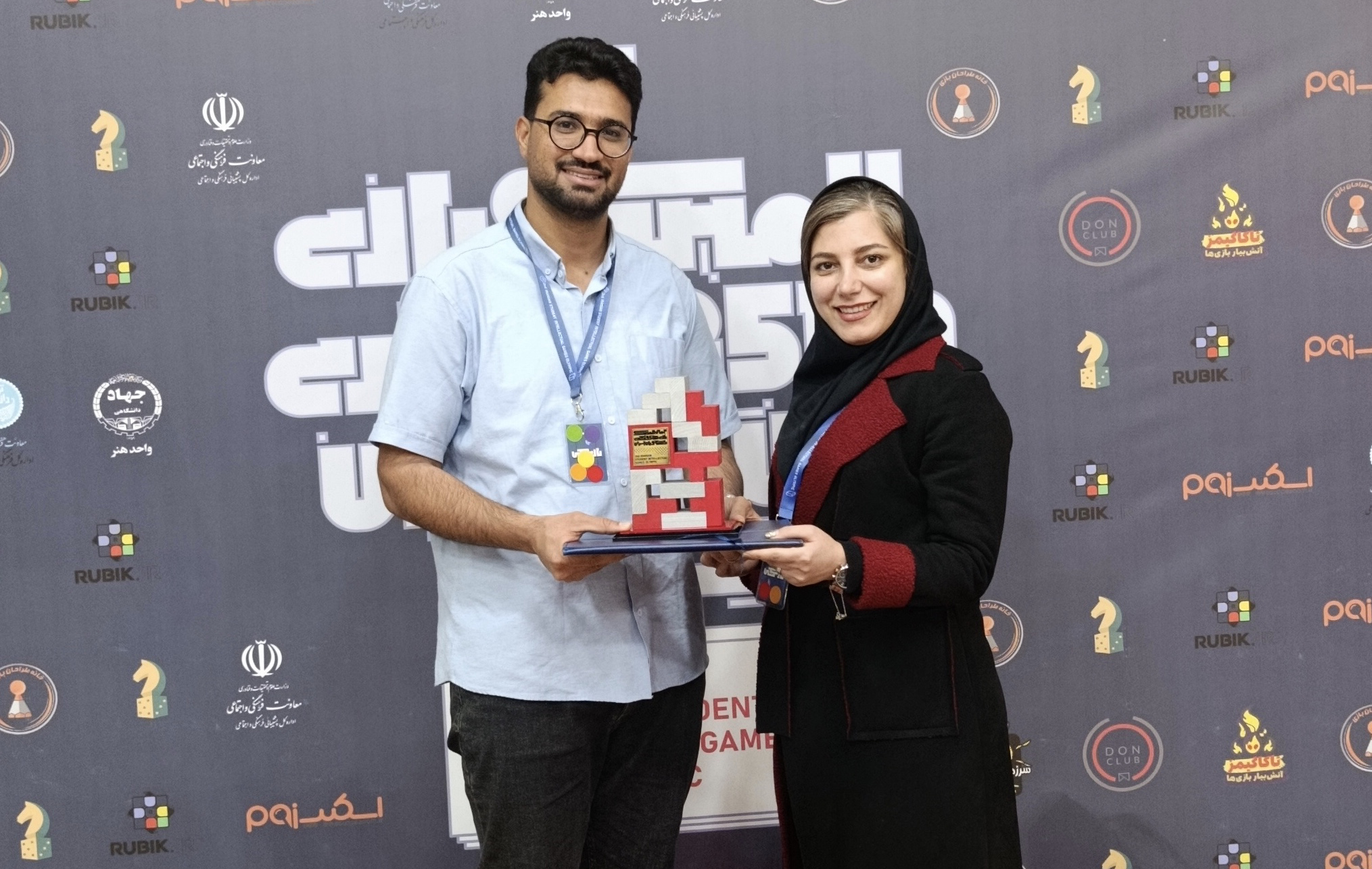 تندیس مقام دوم المپیک بازیهای فکری ایران در دستان زینب خسروی